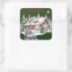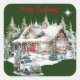 Pegatina Cuadrada Feliz Navidad desde la tarjeta navideña de cabaña