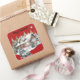 Feliz Navidad desde el Pegatina de la Plaza de la Fiesta de Cabina. De nuestro invierno en la colección Cabin. Cabina de troncos con ciervo y vistas al oso. La estrella de Belén brilla con fuerza. Un camión vintage está cargado de regalos y decoraciones para el día especial. El camarote está iluminado para los clientes más esperados. Cálido y acogedor. Perfecto para sellar paquetes de regalo, sobres, regalos de comida. "¡Feliz Navidad!"
