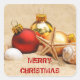 Una playa de arena con adornos navideños que representan unas cálidas vacaciones meteorológicas. ¡Ideal para una escapada o un lugar cálido! Deséenle a alguien una Feliz Navidad desde el otro lado de las millas - personalizable total para que usted lo personalize como usted quiera!