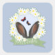 Este feliz pegatina de la plaza de Pascua presenta una bonito de margaritas florales, alegre guirnalda de Pascua con orejas conejitas grises y mariposas sobre un fondo azul.