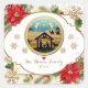 Pegatina Cuadrada Feliz Navidad, Escena de Natividad del Niño Jesús