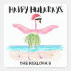 Pegatina Cuadrada Feliz Navidad Flamingo Playa Tropical de Navidad