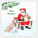 Pegatina Cuadrada Feliz Navidad! Papá Noel con gato y perro