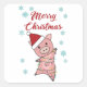 Pegatina Cuadrada Feliz Navidad Piglet Pig Nieve Invierno
