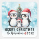 Pegatina Cuadrada Feliz Navidad Pingüinos Azules y Personalizados Ro