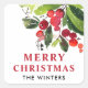 Pegatina Cuadrada Feliz Navidad Red Watercolor Greenerenery Monogram