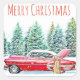 Pegatina Cuadrada Feliz Navidad Retro Car y Sled Wintery