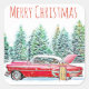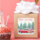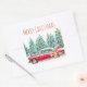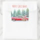 Pegatina Cuadrada Feliz Navidad Retro Car y Sled Wintery