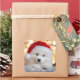 Pegatina Cuadrada Feliz Navidad Samoyen Perro Cachorro con Santa Hat