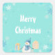 Pegatina Cuadrada Feliz Navidad Snowman con regalos