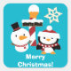 Pegatina Cuadrada Feliz Navidad Snowman Penguin