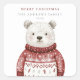 Pegatina Cuadrada Feliz oso navideño en un suéter