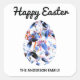 Estos pegatinas personalizados muestran el saludo 'Happy Easter' en la tipografía de escritura, encima de una foto de un colorido huevo de Pascua. Personalice a los pegatinas con su(s) nombre(s) en letras mayúsculas debajo de la foto del huevo. Los pegatinas hacen una divertida adición estacional a los bolsos de favoritas de la fiesta, tarjetas y sobres, bolsos de recolección de huevos y regalos envueltos de Pascua.