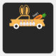 Pegatina Cuadrada Feliz Pascua con zanahorias y camionetas Pascua 20