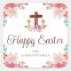 Feliz Pascua Floral Floral Pegatina religioso de Cruz Square
