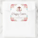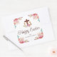 Pegatina Cuadrada Feliz Pascua Floral Acuarela Cruz Religiosa