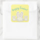 Pegatina Cuadrada Feliz Pascua lindo conejo guión de personalizado a