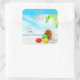 Pegatina Cuadrada Feliz Pascua Tropical Ocean Beach en vacaciones co
