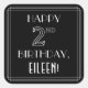 Pegatina Cuadrada FELIZ SEGUNDO CUMPLEAÑOS; Estilo Art Decó; Nombre