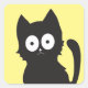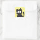 Pegatina Cuadrada Feliz silueta negra de gato en amarillo