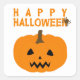 Pegatina Cuadrada Feliz texto de Halloween y calabaza en blanco