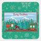 El tren navideño Merry tiene un tren personalizado de colores brillantes con un pequeño perro escocés.