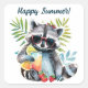 Pegatina Cuadrada Feliz verano, mapache, escalada de playa