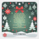 This festive Christmas design features a bright red bow, hanging ornaments, snowflakes, and snowy pine trees on a deep green background. The center area is perfect for adding custom text like “Merry Christmas”, “Happy Holidays”, “Season’s Greetings”, “Winter Wonderland”, or personalized names and messages. Ideal for holiday cards, posters, invitations, and gifts.