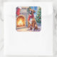Pegatina Cuadrada Festive Fireplace Boxer Christmas Art