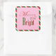 Pegatina Cuadrada Festive Merry and Bright in Red Green and Pink
