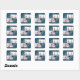 Este moderno pegatina de vacaciones Navidades presenta un marco geométrico blanco con dos fotos y una tipografía mínima sobre un hermoso fondo azul. Vea esta colección para coordinar tarjetas de felicitación de Navidades y colores festivos adicionales.