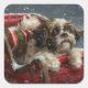 Pegatina Cuadrada Festividad de los Navidades de perro de Shih Tzu