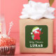 Cuida la cara de tu hijo iluminar a estos Navidades cuando les das un regalo adjunto con este dulce y gracioso pegatina Navidad. Esta pegatina navideña para regalos para niños presenta un fondo festivo verde oscuro con un adorable monstruo rojo de Navidad que tiene cuerno de rayas azules y blancas. Está sosteniendo un regalo y tiene un sombrero verde de Santa. Personalice el nombre de su hijo. Perfecto para los primeros Navidades del bebé.