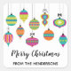 Infundir algunas festividades en tus regalos de Navidad con este divertido pegatina de vacaciones con coloridos adornos de Navidad con saludos de Navidad en texto de caligrafía.