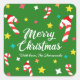 Pegatina Cuadrada Festividad Patrón de Candy Verde Feliz Navidad
