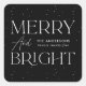Pegatina navideña moderna con "Merry and Bright" en negrita con letras blancas en un elegante fondo negro con puntos blancos sutiles para una elegante y minimalista apariencia navideña. Personalice a estos pegatinas de vacaciones en blanco y negro con su nombre familiar y el año para añadir una moda, un toque personalizado a la envoltura de regalo, tarjetas de vacaciones, favores de fiesta o empaque estacional. Ideal para celebraciones modernas con un toque de elegancia.
