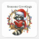 Pegatina de Holiday Square de Seasons Greetings raccoon