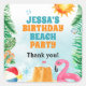 Un fondo azul acuático oscuro crea el escenario para un pegatina fiesta de playa de color acuático. Las palmeras decoran los lados del pegatina con objetos de playa como una pelota de playa, un castillo de arena y un flotador flamingo repartidos entre las hojas. Úsalo como sellos para sobres o como agradecimiento rápido a los pegatinas en favores en una fiesta de cumpleaños de niños o adultos con temática de playa, soltera o soltera, barbacoa, o cualquier reunión casual con temática de playa. Disponible con productos a juego.