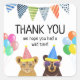 dibujo original de Komila Y. Oso y cachorro de león animales fiestas salvajes ilustracion pegatinas de cumpleaños. ¡Personalizable