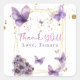 Pegatina Cuadrada Fiesta Baby Shower Floral Mariposa Purple Gold