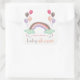 Pegatina Cuadrada Fiesta de Bebé Niña con Globos y Arcoíris en Paste
