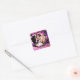 PEGATINA CUADRADA FIESTA DE BODA DE BICICLETAS DE ROSA ROSA