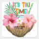 Pegatinas de tema de fiesta tiki para parejas con ducha de regalo que presentan un cóctel de coco tropical de acuarela con flores de hibisco rosadas, hoja de palma y una leyenda de "¡Es hora de Tiki!" en colores alegres y veraniegos. Estos pueden ser utilizados como sellos de sobre para agregar un toque inspirado en la isla a sus invitaciones y para regalos y favores. Arte por KL Stock