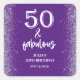 Pegatina Cuadrada Fiesta de cumpleaños 50 Purple, Purpurina de Plata