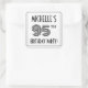 Este elegante diseño pegatina cuadrado de la celebración de los noventa y cinco años inspirado en el Roaring Twenties, presenta un nombre de personalizable, un elegante estilo Art Déco inspirado en el número "95", el mensaje "¡PARTIDO DE CUMPLEAÑOS!" y un patrón fronterizo compuesto de líneas. Pegatinas como estos pueden ser usados o entregados en un fiesta que se lleva a cabo para alguien que está celebrando su 95º cumpleaños, o tal vez usados al preparar regalos o invitaciones para tal evento. [~Z0000618]