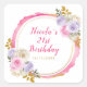 Pegatina Cuadrada Fiesta de cumpleaños de flores elegantes rosadas y
