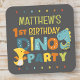 Pegatina Cuadrada Fiesta de Cumpleaños de Niño con Dino Dinosaurio M