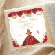 Pegatina Cuadrada Fiesta de cumpleaños de Princesas Florales Rojas