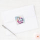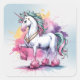 Pegatina Cuadrada Fiesta de cumpleaños de Unicornio con acuarela enc