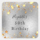 Para un cumpleaños elegante, clásico, glamuroso y de estilo femenino. Con estrellas de oro falsas goteando. Un fondo falso plateado. Con el texto: 50º cumpleaños (o cualquier edad). Personalice y agregue un nombre escrito con un guión de estilo con letras a mano moderno. Utilícelo como sellos para sobres, en tarjetas de agradecimiento o favores de partido.